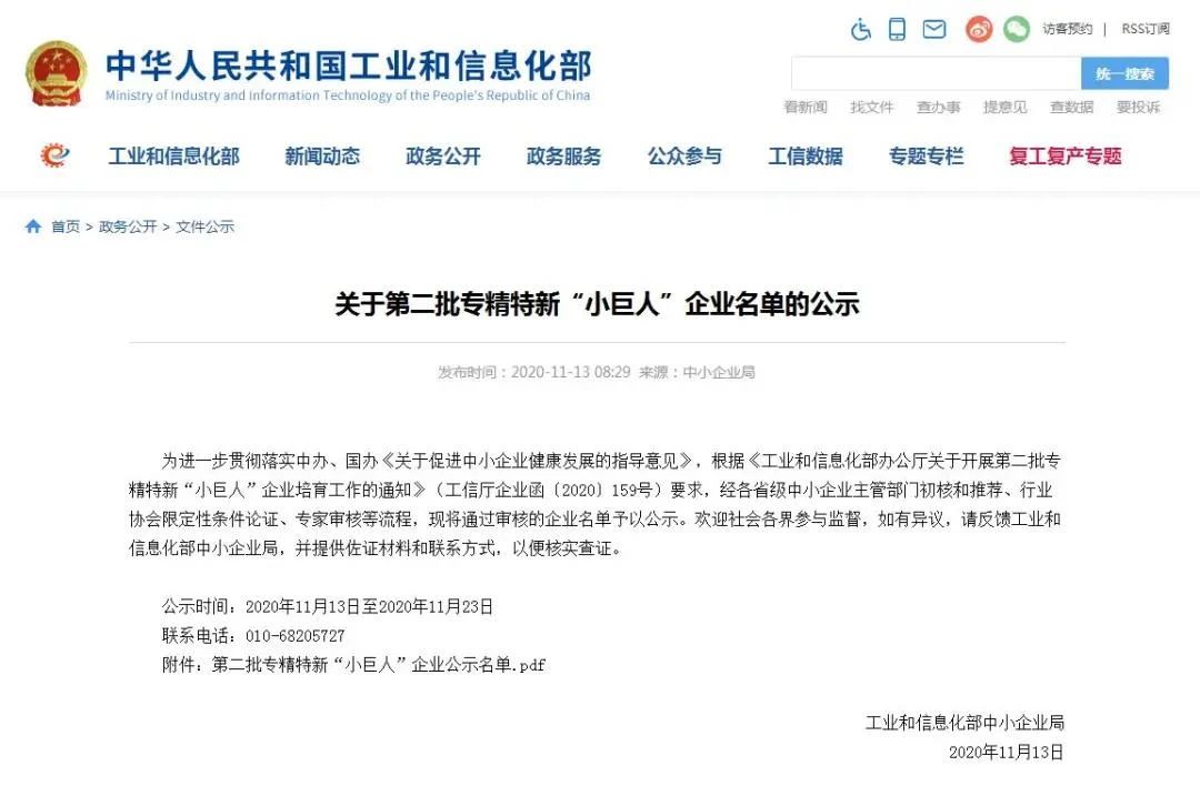 此次專精特新“小巨人”企業(yè)的評選是根據(jù)《工業(yè)和信息化部辦公廳關(guān)于開展第二批專精特新“小巨人”企業(yè)培育工作的通知》(工信廳企業(yè)函〔2020〕159號)要求,經(jīng)各省級中小企業(yè)主管部門初核和推薦、行業(yè)協(xié)會限定性條件論證、專家審核等流程,歷時4個月的時間,最終由工業(yè)和信息化部認(rèn)定了一批創(chuàng)新能力強(qiáng)、專業(yè)化發(fā)展明顯、管理水平先進(jìn)、轉(zhuǎn)型升級突出、市場占有率高、質(zhì)量效益較好的專精特新“小巨人”企業(yè)。